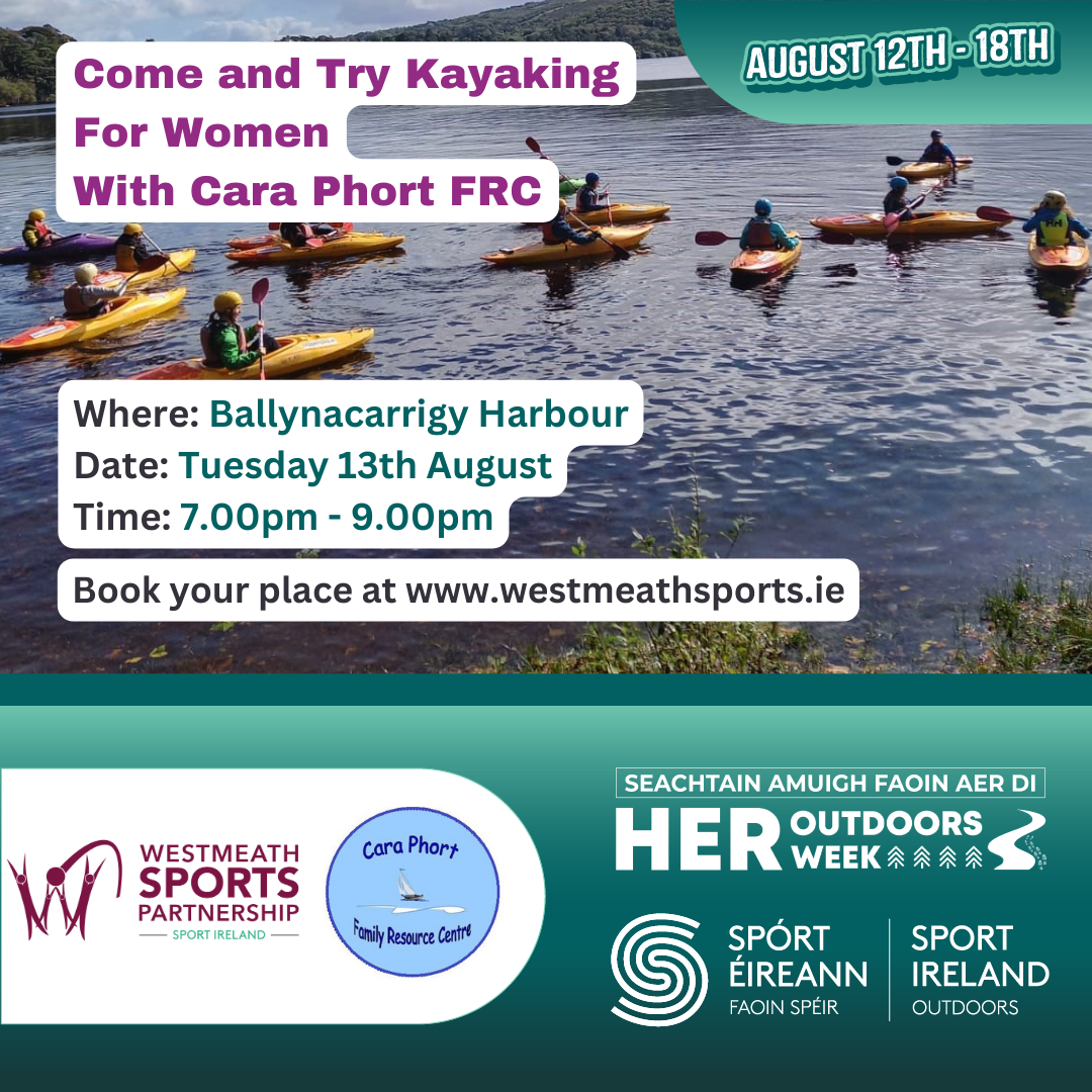 THIS IS NOW SOLD OUT!! THIS IS NOW SOLD OUT!! Activity: Kayaking Taster for Women Where: Ballynacarrigy Harbour Time: 7.00pm – 9.00pm Age: Women aged 18+ Cost: Free